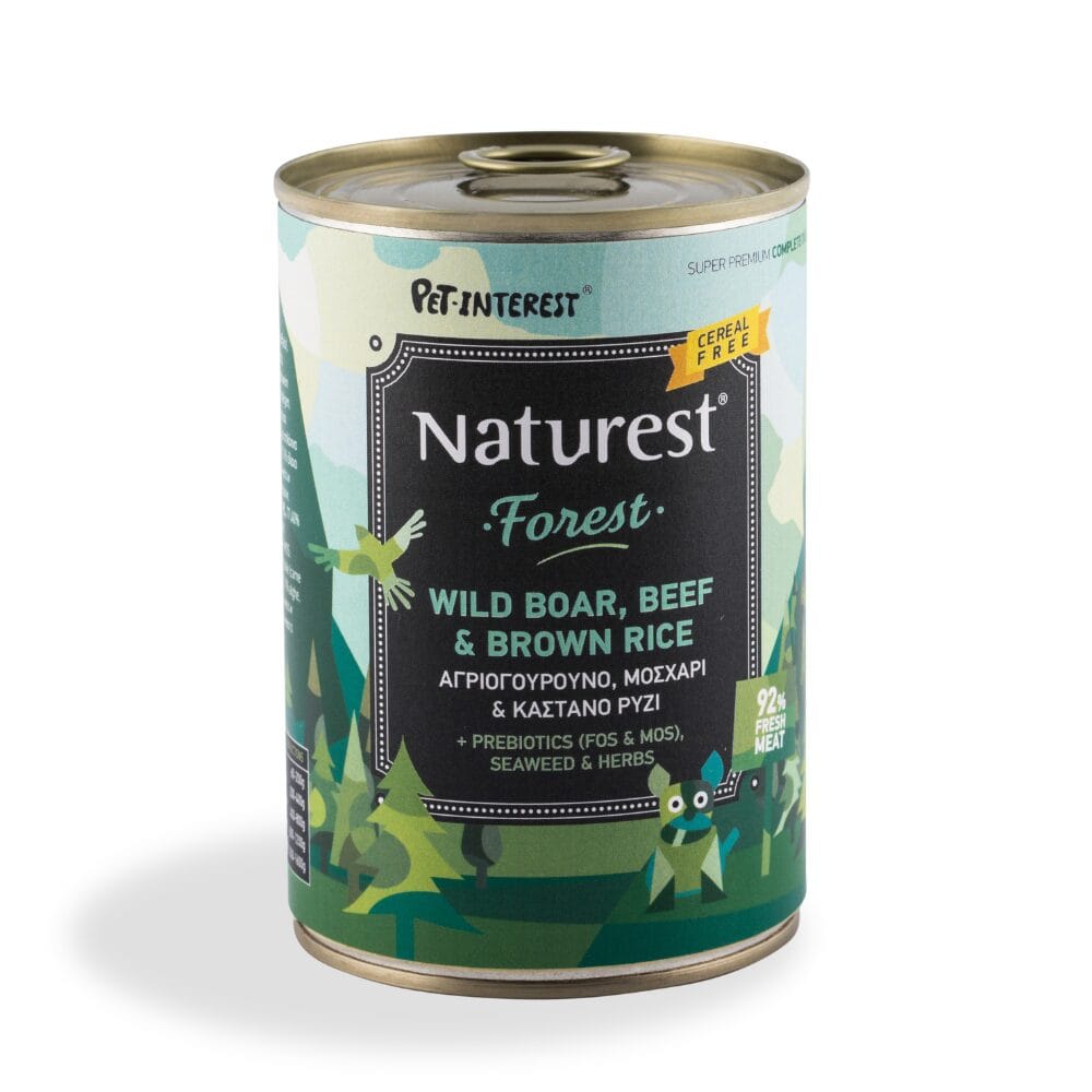 Επιλέξτε το Naturest Forest Wild Boar, Beef & Brown Rice 400gr για να προσφέρετε στο κατοικίδιό σας μια εμπειρία υψηλής γαστρονομικής απόλαυσης, εξασφαλίζοντας την καλύτερη δυνατή φροντίδα για την υγεία και ευεξία του.