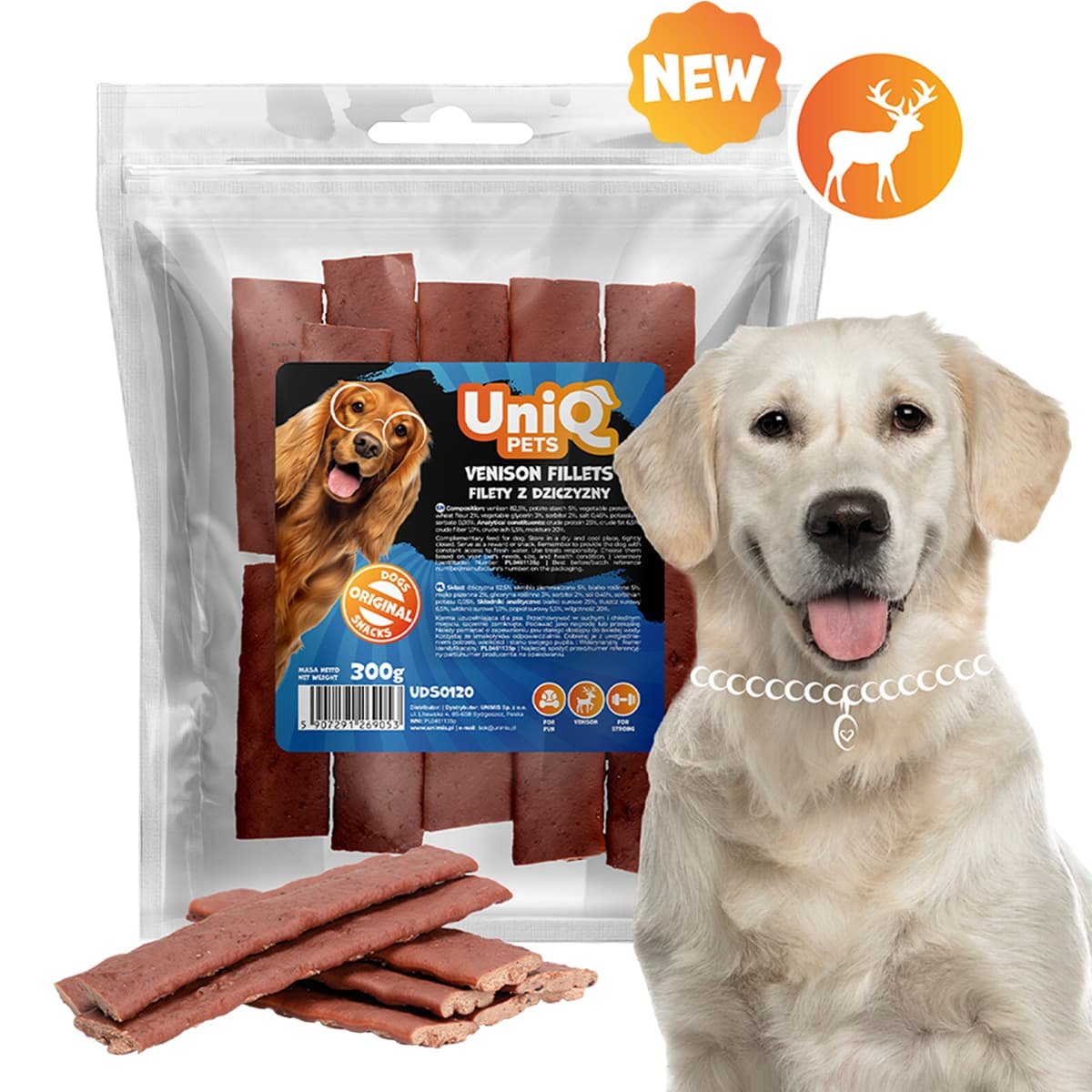 Με τις  Uniq – Λιχουδιές Σκύλου Φιλέτα Ελαφιού 300gr επιβραβεύετε τον σκύλο σας και του προσφέρετε υγιεινή λιχουδιά με απολαυστική γεύση.
