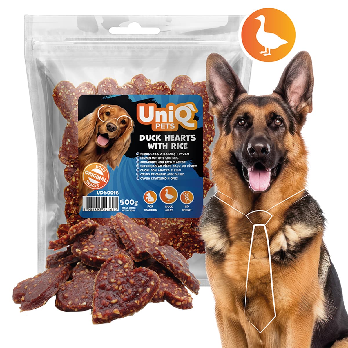 Προσφέρετε στον σκύλο σας μια εξαιρετικής ποιότητας, θρεπτική λιχουδιά με τις Uniq 500gr Λιχουδιά για Σκύλους Καρδιές Πάπιας με Ρύζι. Ένα πλήρως φυσικό σνακ, υψηλής περιεκτικότητας σε πρωτεΐνες, που συνδυάζει τις πλούσιες σε θρεπτικά συστατικά καρδιές πάπιας με το εύπεπτο και ευεργετικό ρύζι. Η σύνθεσή του υποστηρίζει τη μυϊκή ανάπτυξη, ενισχύει την ενέργεια του σκύλου και συμβάλλει στην καλή λειτουργία του πεπτικού συστήματος, προσφέροντας ταυτόχρονα μια απολαυστική γευστική εμπειρία που λατρεύουν τα σκυλιά.