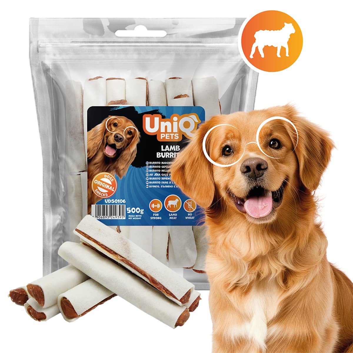 Το Uniq 500gr Λιχουδιά για Σκύλους Μπουρίτο Αρνιού είναι ένα νόστιμο, πλούσιο σε πρωτεΐνες σνακ φτιαγμένο με αληθινό αρνί για μια γεύση που τα σκυλιά θα λατρέψουν! Ιδανικά για εκπαίδευση, επιβράβευση ή απλώς για να κακομάθετε το κουτάβι σας, αυτές οι μαλακές και μαστιχωτές μπουκιές σε σχήμα burrito είναι τόσο διασκεδαστικές όσο και υγιεινές.