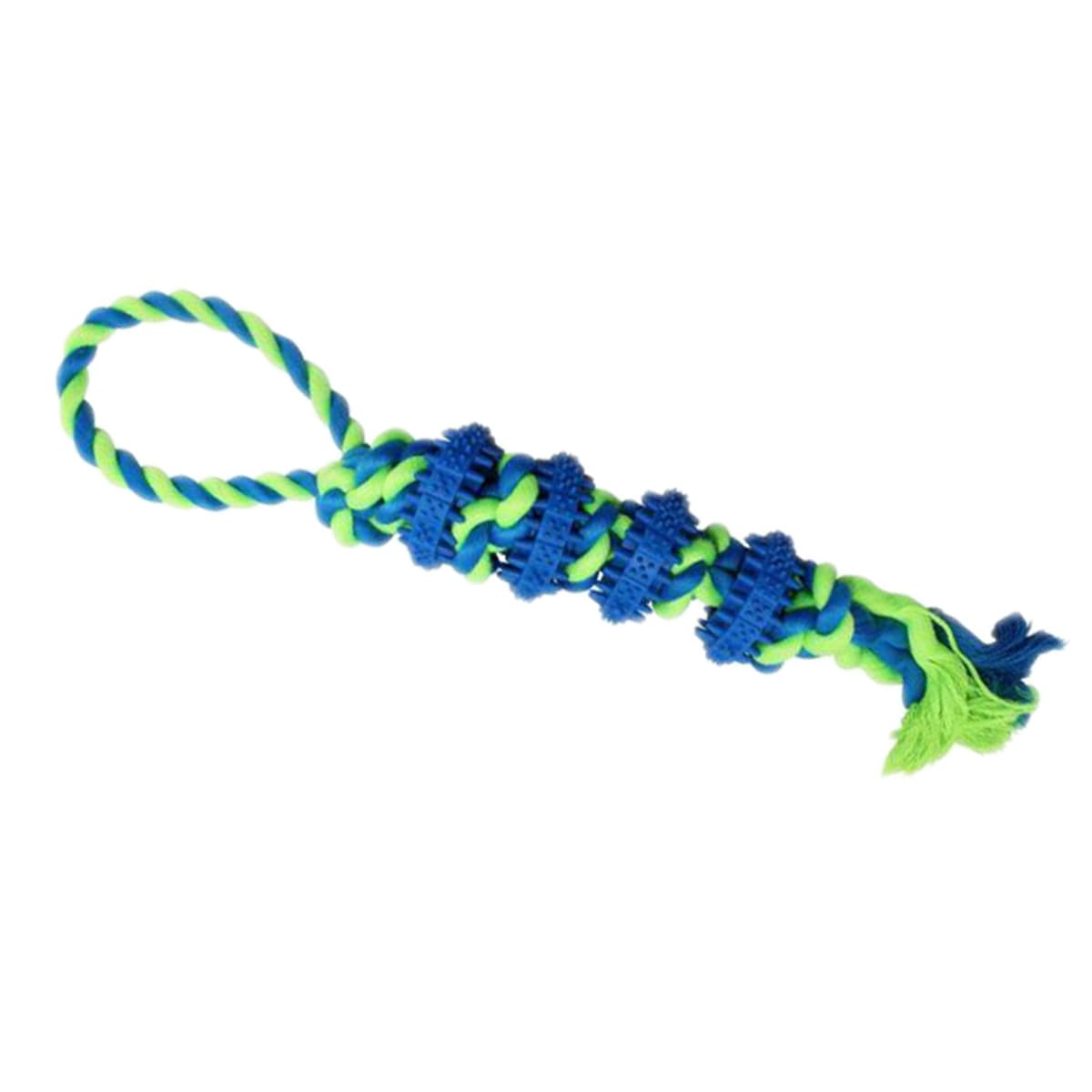 Με το Uniq Παιχνίδι για Σκύλους από Σχοινί και Πλαστικούς Δίσκους Μασητικούς Με Γεύση Μέντα Μπλε 38εκ. συνδυάζει ανθεκτικό σχοινί με πλαστικούς μασητικούς δίσκους, προσφέροντας διασκέδαση και ταυτόχρονα φροντίδα για τη στοματική υγεία του σκύλου σας. Η γεύση μέντας βοηθά στη φρεσκάδα της αναπνοής, ενώ η πλεκτή κατασκευή είναι ιδανική για μάσημα, τράβηγμα και παιχνίδι.